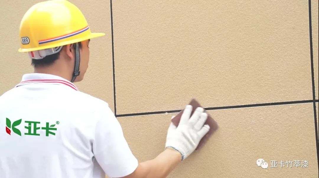 (1)在罩面漆施工前,一定要確認(rèn)亞卡仿石漆是否完全干透,這往往是施工成敗關(guān)鍵。