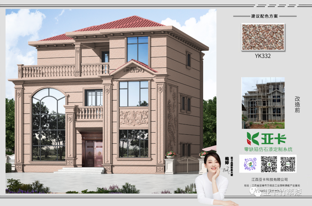 YK-332是壽寧紅的仿石漆,是一種鮮艷、熱烈的顏色,它代表著繁榮、富貴和吉祥。據(jù)傳,YK-332最初出現(xiàn)在明代的建筑中,是由福建壽寧地區(qū)的紅色石材所提煉而成。這種顏色具有濃郁的歷史感和文化底蘊,因此在中國傳統(tǒng)建筑中得到了廣泛的應(yīng)用。它能夠很好地突出建筑的美感,營造出一種簡潔大氣的氛圍。在仿古建筑中,YK-332的應(yīng)用可以很好地還原出古代建筑的風(fēng)貌,讓游客更好地感受到歷史的厚重感。而在園林建筑中,YK-332的應(yīng)用則能夠營造出一種優(yōu)美、雅致的氛圍,讓游客在其中流連忘返。