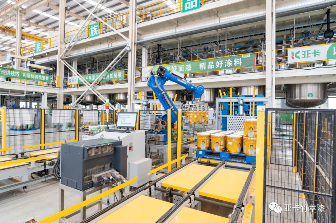 其中亞卡涂料2021年正式投產(chǎn),建成的建筑涂料車間占地13000平方,干粉車間占地12000平方,車間內(nèi)擁有多條全自動生產(chǎn)線,通過機器人、生產(chǎn)線、信息系統(tǒng)的集成應(yīng)用,實現(xiàn)產(chǎn)品在生產(chǎn)、倉儲、物流全過程的自動化、智能化和一體化。